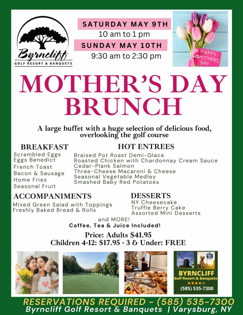 Call 1-585-535-7300 for reservations. To all the moms out there, we appreciate everything you do!